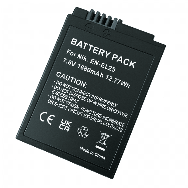 EN-EL25 – see on Nikon kaamarate liitiumioon akude analoog, millel on täiuslik infokiip, mis näitab patareide täpset laadimistaset displeil. Peale selle saab seda laadida nii original kui ka analoog laadijaga. Kuigi laadija on analoog, vastab see täielikult tootja nõuetele. Originaaliga võrreldes omab see suuremat mahtu, suurem maht tähendab aga rohkem kaadreid või filmimise minuteid. See on kindel eneergia allikas, mis mitte kunagi ei lase möööduda hetkel, mida tahate jäädvustada. Ärge pikalt kaalutlege, ostke see aku "TOP Baterija” ja olete meeldivalt üllatunud!